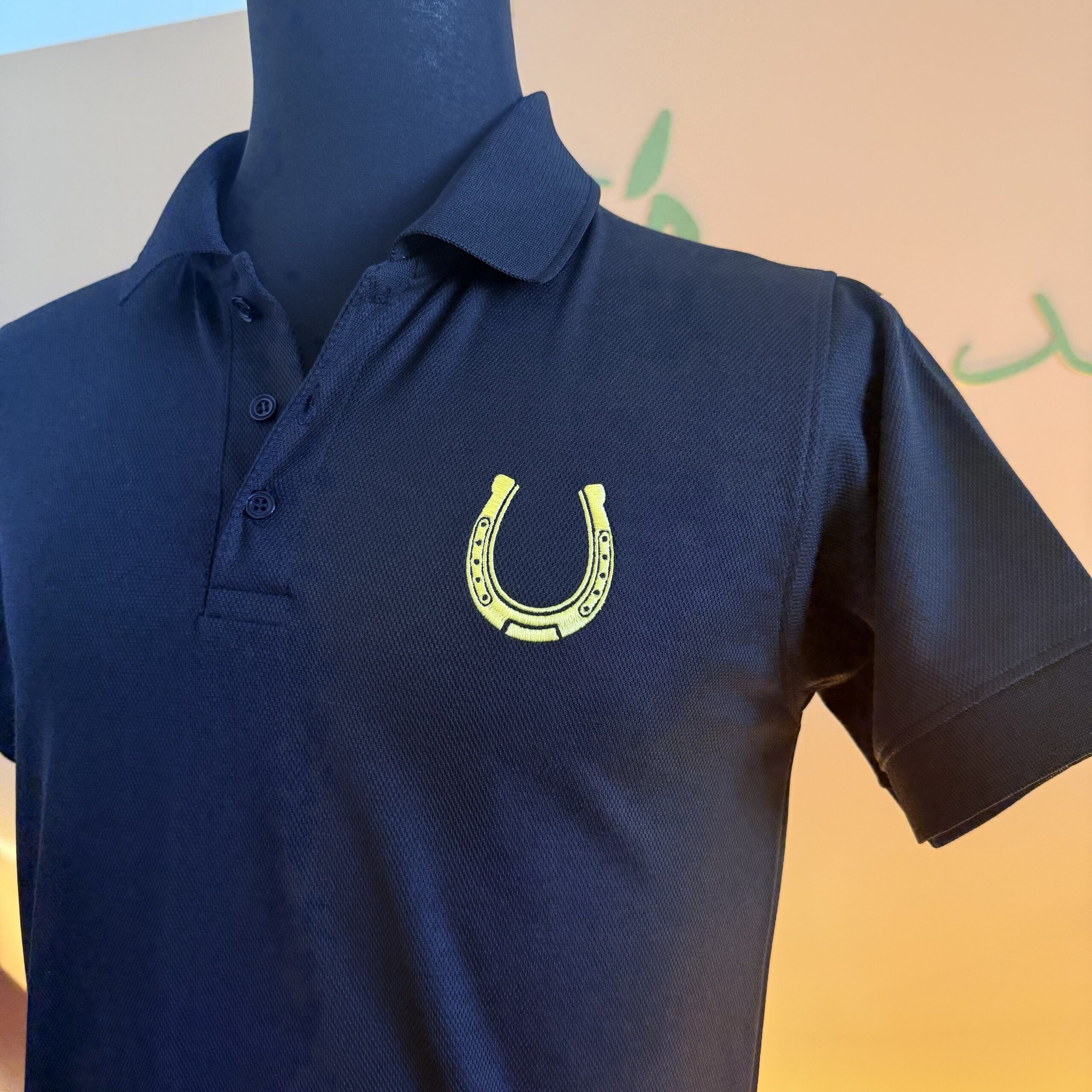 A refined blend of sport and style. This polo features a subtle horseshoe detail symbolizing luck and strength, paired with a classic fit and breathable fabric. Designed for riders and enthusiasts who appreciate elegance both in and out of the stable.